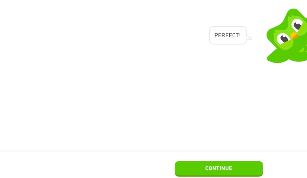 The Duo part of Duolingo, as well as meaning two, is also the website’s green owl, a mascot who keeps urging you on in that intermittent re-inforcement fashion that psychologists have shown to be most effective at keeping people trapped in their addictions.