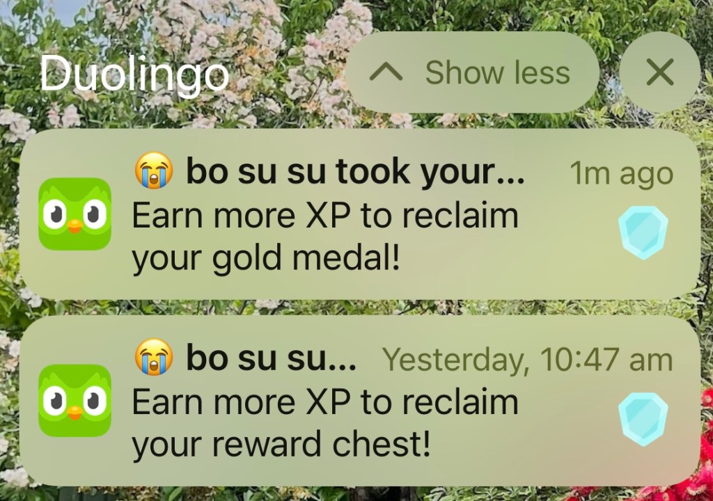 Each day became filled with too many messages urging me to do even better, work even harder, amass more points, and maintain my position. And if I slipped behind, or was about to be overtaken, the messages arrived as relentlessly as those in the opening scenes of Harry Potter, impossible to ignore.