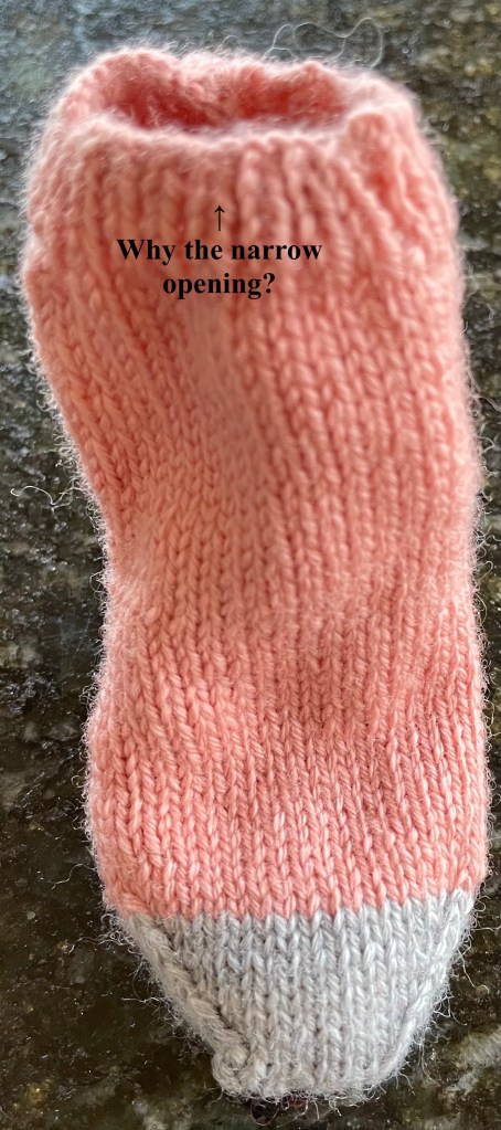 But then things went awry, and the little bootie took on a life of its own as I tried to follow the obscure instructions (trusted since 1923) on how to knit up stitches at the sides to bring it together before completing the foot section.