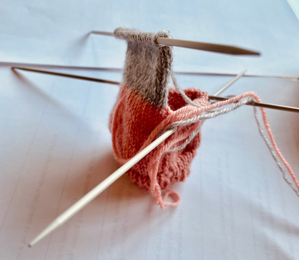 Late May 2022: It took the better part of a month to cast on (undo, cast on, undo, cast on …) without twisting the needles or accidentally knitting backwards