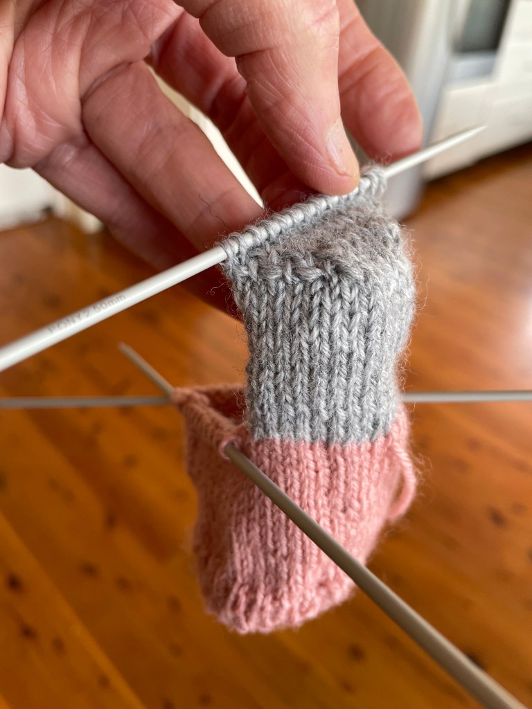 By now, it was mid July and although I’d knitted two booties, knew how to turn a heel and could seamlessly combine the toe section, neither item was good enough to present to a brand new mother. I was ready to admit defeat.