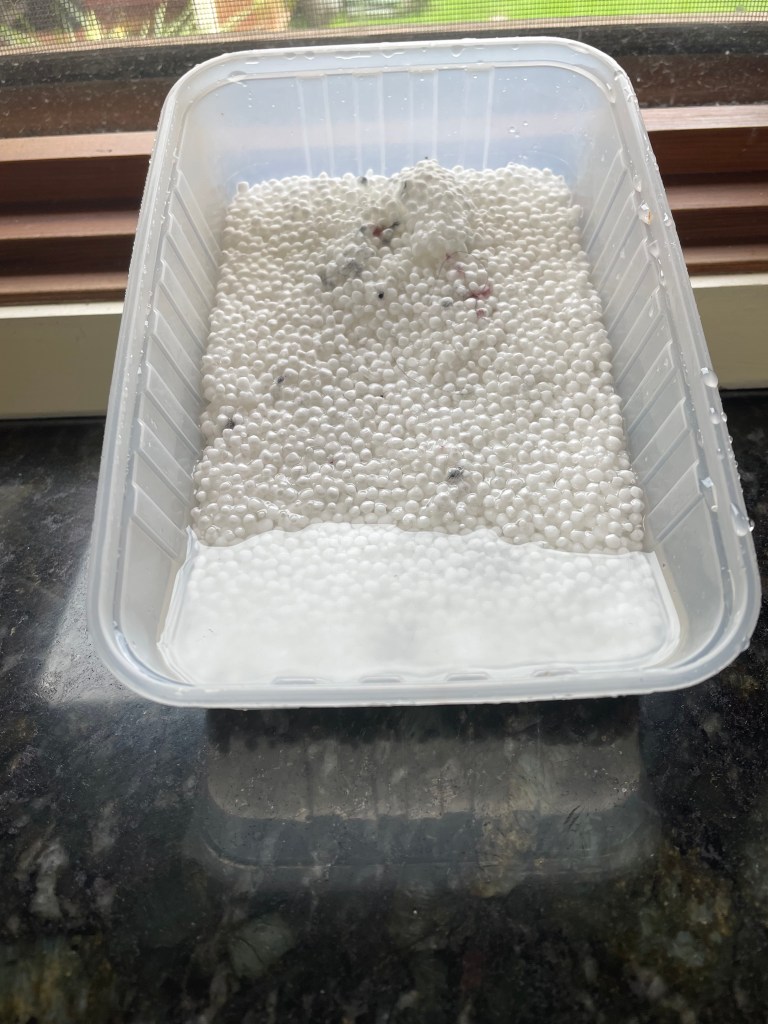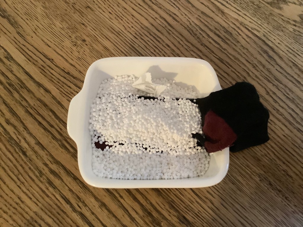 But the few packs I could scavenge didn’t seem enough, so I bought more from my friendly hardware monolith, slipped the phone into an old sock and buried it in a heap of the beads for 5 days.