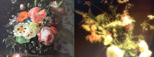 The featured image is from a still life by painter Abraham Mignon (1640-1679). The bouquet to its right was gifted to one of our participants.