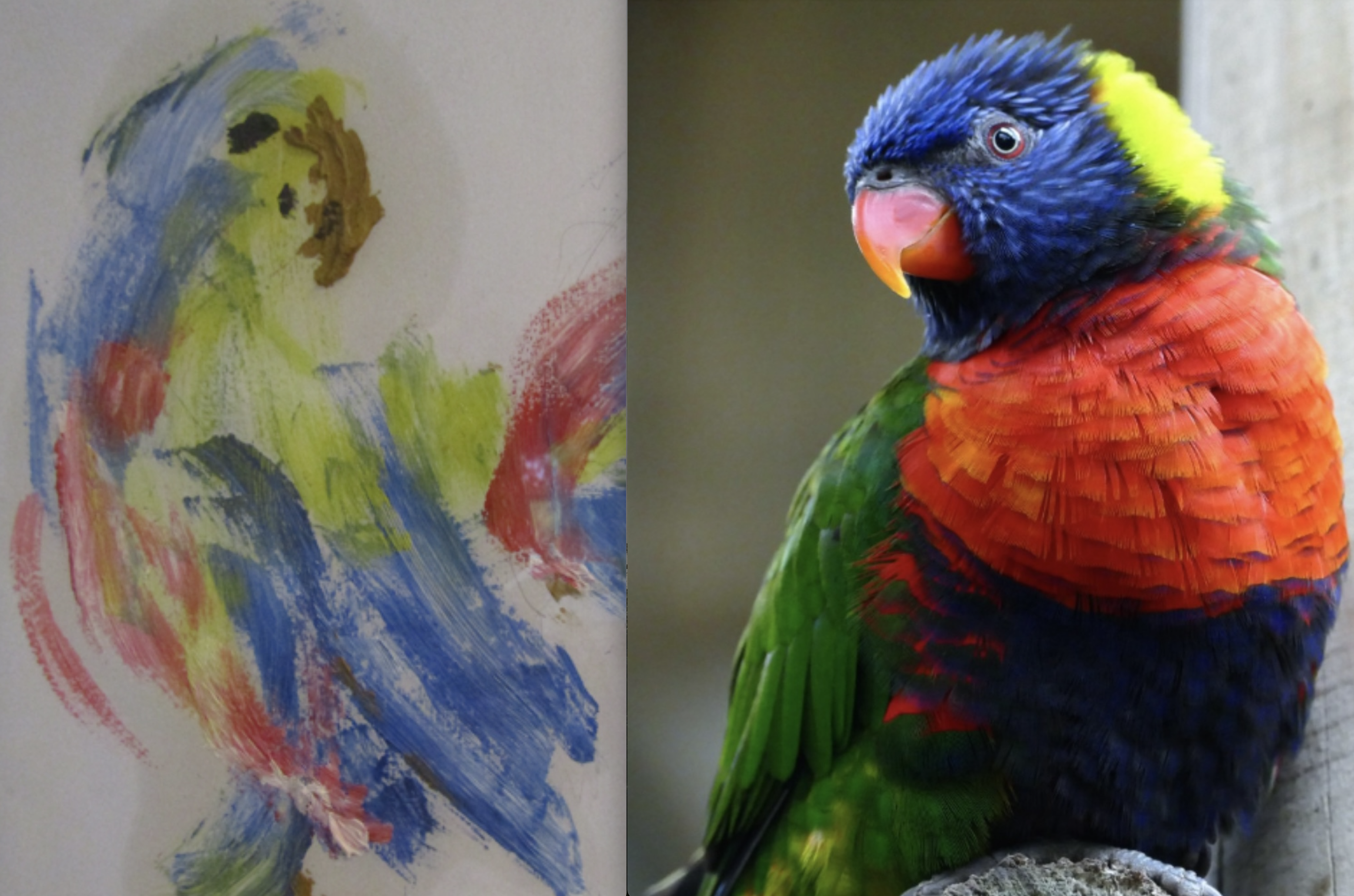 Art in nature. The rainbow lorikeet, but which one is the fake?
