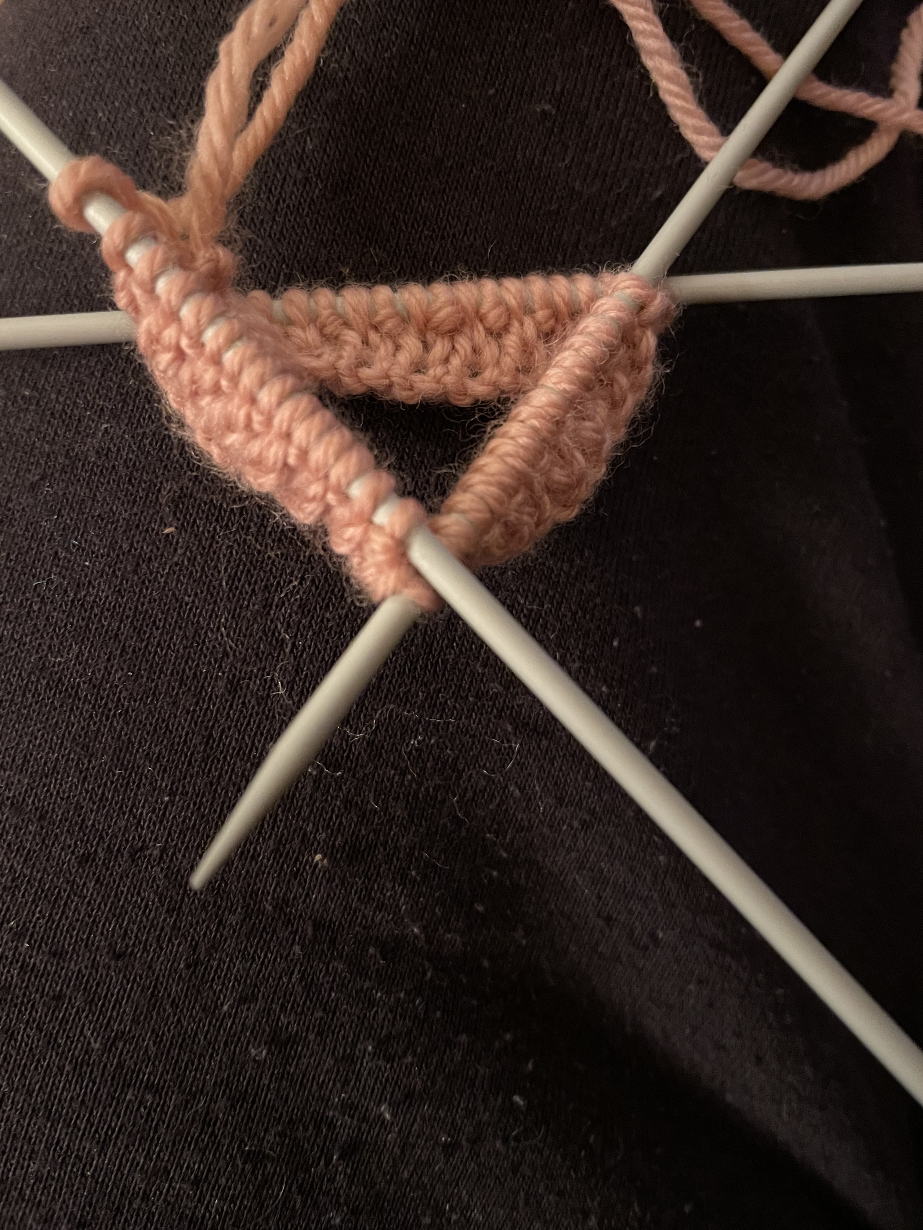 • Four of these tiny double pointed toothpick needles had to be wrangled simultaneously, and