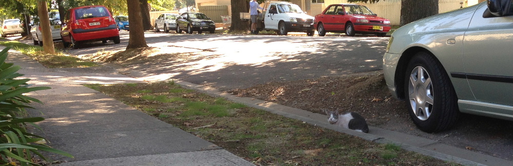 The lack of foxes in the area is probably helped by the presence of my black whippet Ziggy who tolerates no intruders, a noisy dog called Leo over the back fence who tolerates  – well, nothing at all, really – and in particular, Next-Door’s cat who, when not on their roof coolly staring down at Scarlet and Nancy from on high in a rather intimidatory manner, is crawling the gutters outside my house, staking out her territory: