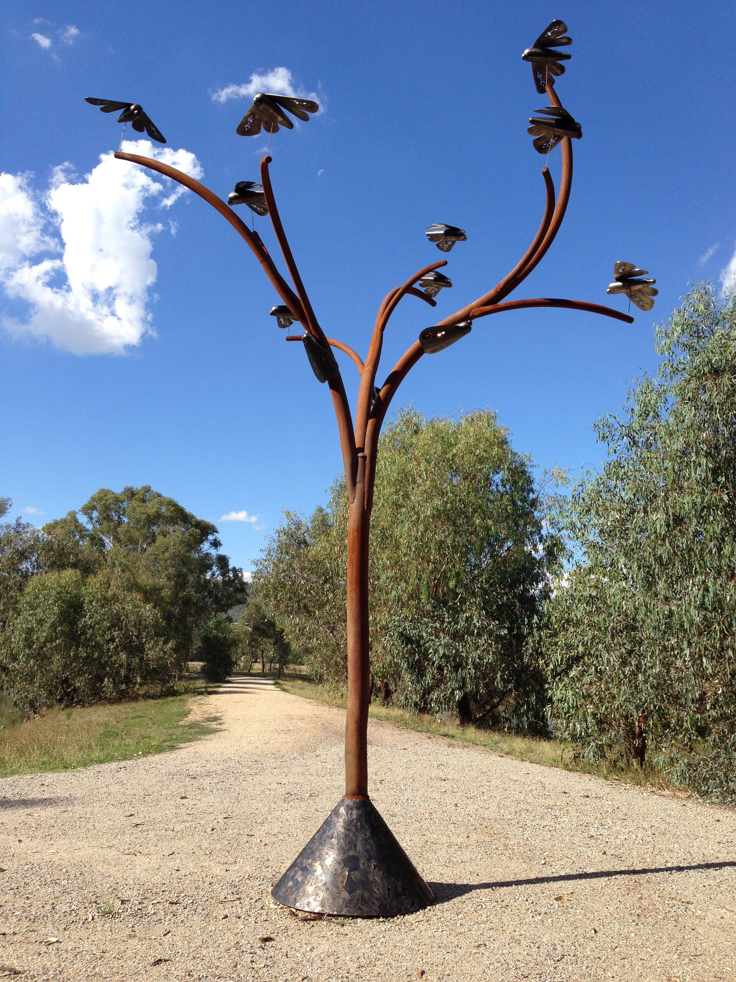 The sculptures speak for themselves, nestled in the superb bushland beside the lagoons and the river: