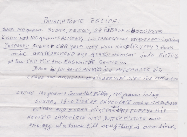 Until one day, three months ago, Joe brought frail Martha over to my place – together with her handwritten recipe, translated from the original German, for the famous Austrian Panama Torte!