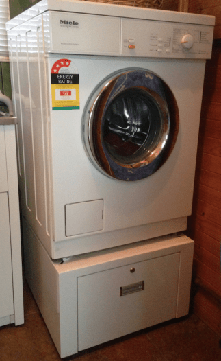 But people who are getting a little older shouldn’t have to do all this bending. So imagine my delight when my house mates affixed a metal stand they no longer needed to lift the front loading machine a foot off the ground. No more bending.