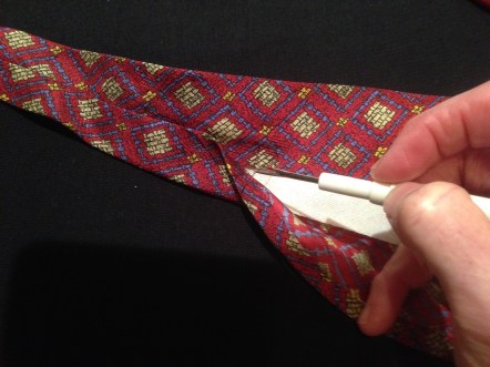 Next, press the tie open with a hot iron, protecting it from burning by using a tea towel on top.