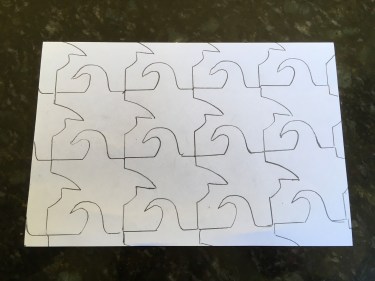 So the best I could come up with for my contribution to the afternoon was a short demonstration on how to do a very basic tessellation, also known as how to cover a surface by repeated use of a single shape, without gaps or overlapping. The technique can result in an endless array of mosaic designs and gives one a certain modicum of personal satisfaction.