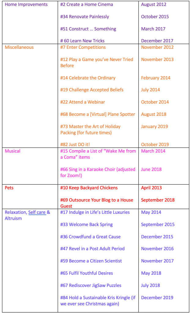 Planning for the next however-many months of my life at home has made me realise that the past 7+ years of writing this blog has been the perfect preparation. Embarrassingly, I’ve discovered that my life in retirement has been almost entirely home-based. (I saw a meme once that suggested the trajectory of your life is determined by the song that was top of the hit parade in your country on your 14th birthday. Mine was Tom Jones’ Green, Green Grass of Home!)