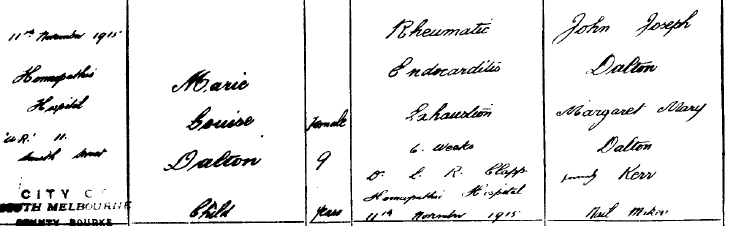 But when I discovered that my grand-mother’s 9 year-old sister, Marie-Louise, died of ‘Rheumatic Endocarditis and Exhaustion’ in 1915, what should happen but my eyes began to glisten for a little girl I never knew existed!