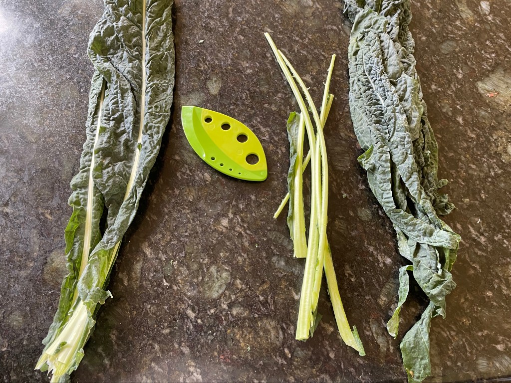 There are so many wonderful small discoveries to be found at our new Harris Farm Market that I don’t know where to start, but the little lime-green kale/silverbeet/herb stripper has to be up there with the best. It rips out the pesky central stalk in milliseconds.