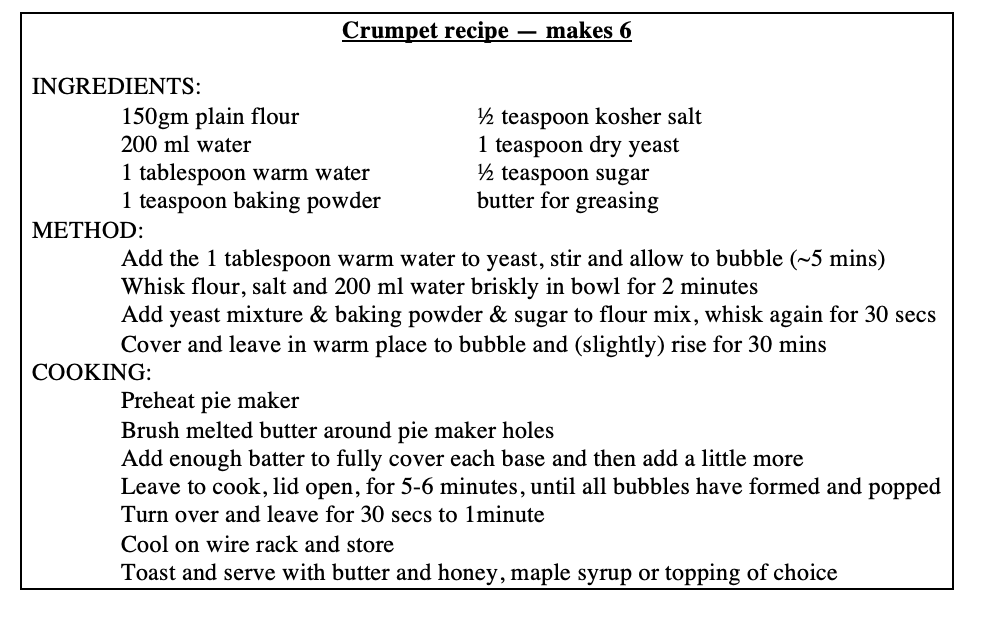 The pandemic threw up another joy recently when Warburtons, a UK company that bakes much loved crumpets, released their secret recipe to comfort suffering compatriots during the depths of winter.