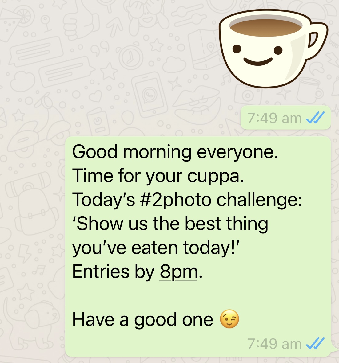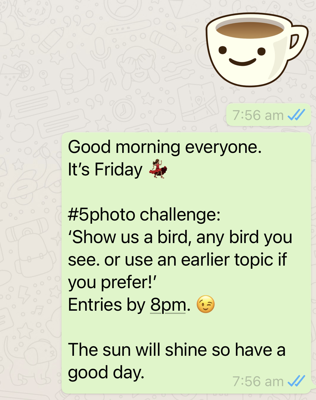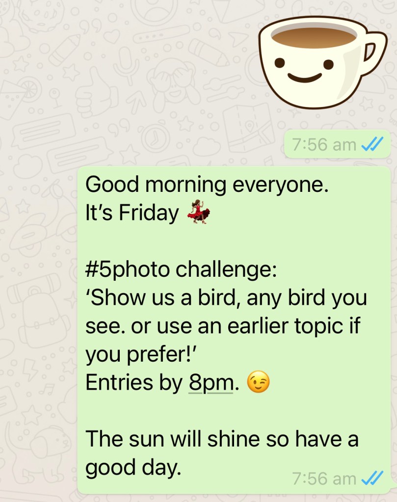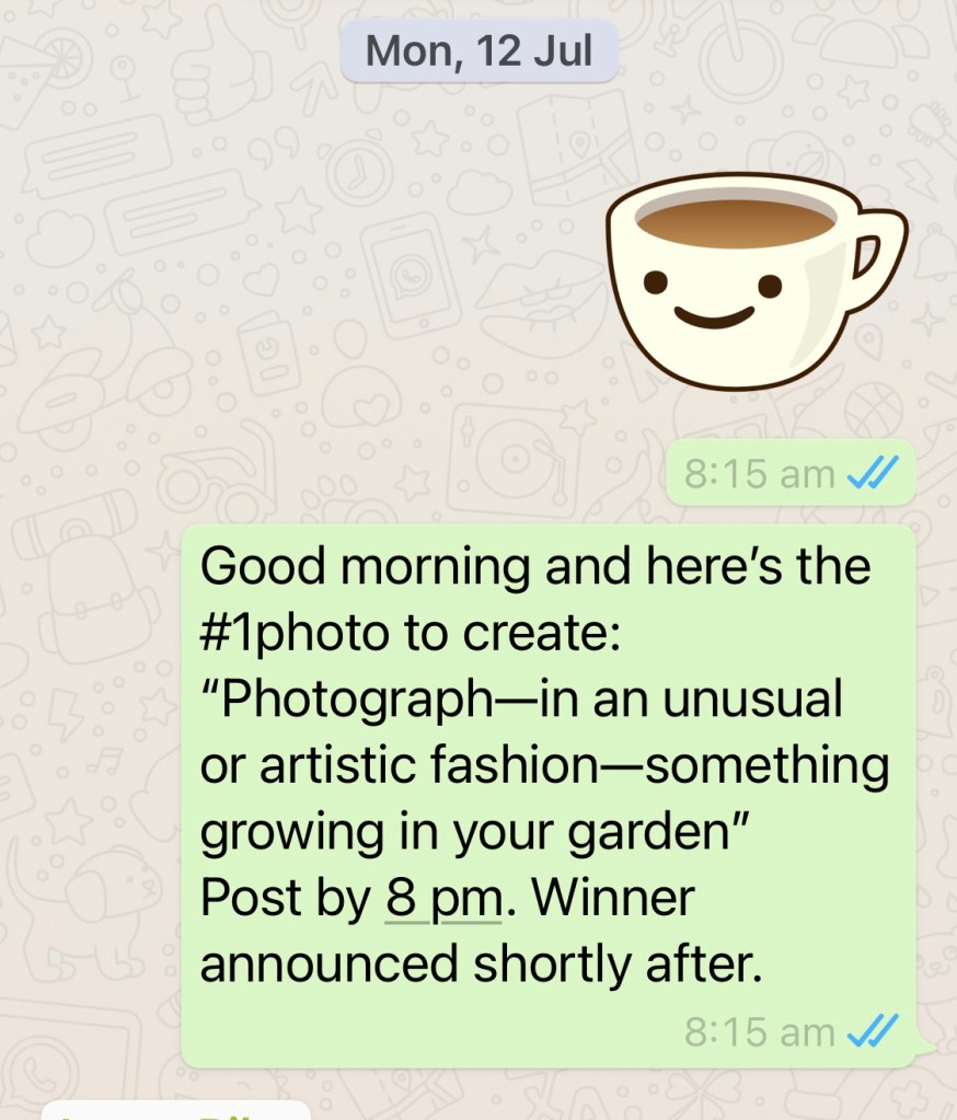Fortunately, the digitally-savvy ones knew how to create a WhatsApp closed group, so we’ve been holding daily photographic competitions to keep up morale.