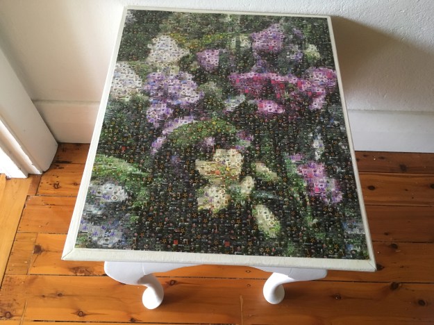 So I turned to a clever website that allows you to instantly turn your photos into photomosaics. Simple to use, and free—or, if you’re after a higher definition, relatively inexpensive—the image it produces can then be copied across to a USB for printing at a photo shop.