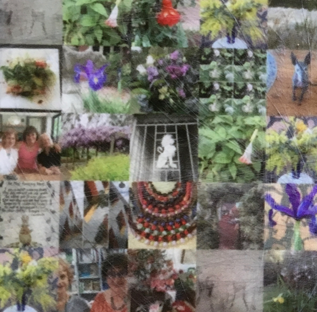 Then I thought of using a photograph of a bunch of gorgeous flowers a dear friend had sent me recently, after she stayed for a weekend: So lovely, but could this be enhanced even further to incorporate the idea that a découpaged piece should have hidden depths behind the picture?